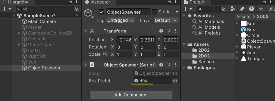 앞에서 생성한 Box를 Box Prefab에 등록한다.